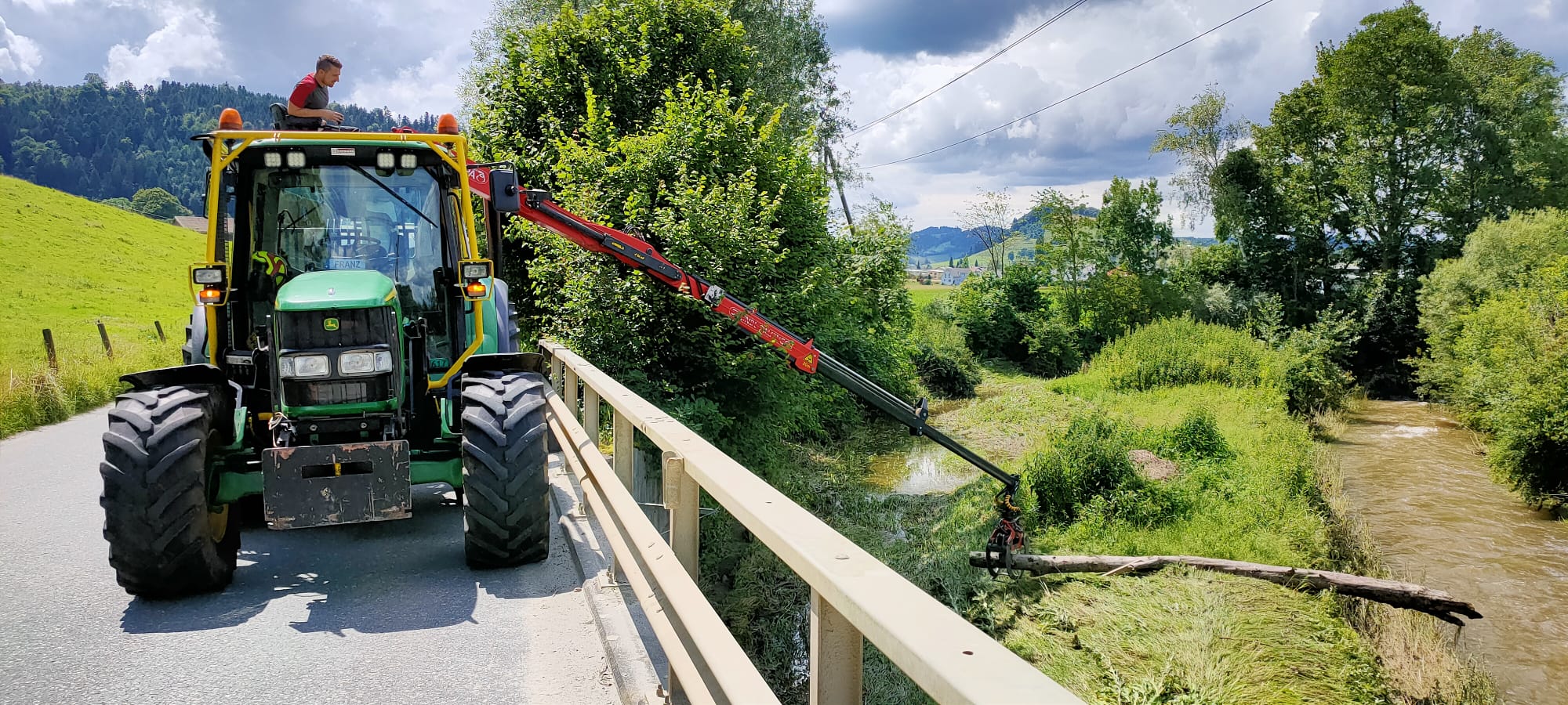 Transport mit Forstanhänger und Wanne von Rundholz/Astmaterial/Schnitzelholz Effizient und kostenoptimiert